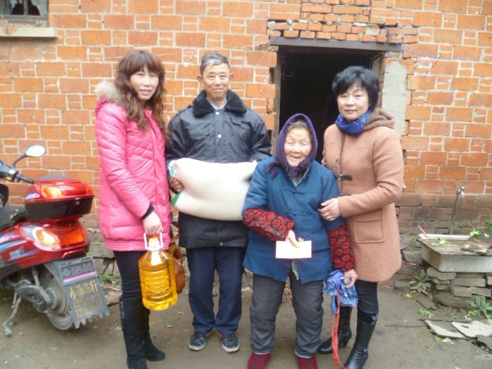 當(dāng)一行人來到丁家山管理處保安員,盛福銀家里時(shí),看到屋內(nèi)昏暗的燈光下,破舊的水壺?zé)鵁崴?,幾只水杯是為公司慰問的領(lǐng)導(dǎo)準(zhǔn)備的。盛福銀是我們公司的優(yōu)秀員工,工作認(rèn)真負(fù)責(zé),從不出差錯(cuò),是管理處主任的好幫手,他用微薄的工資供養(yǎng)著80多歲老母親。他表示對(duì)于金太陽的這個(gè)大家庭給予他的溫暖,他無以為報(bào),唯有好好工作,為金太陽盡自己的一份力量。