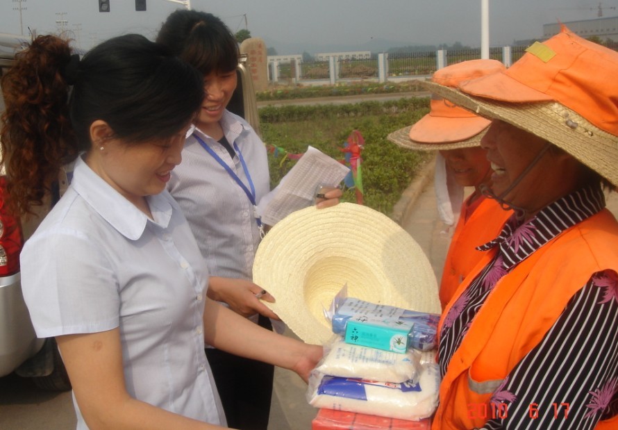 初夏來到,公司領(lǐng)導(dǎo)不忘辛勤工作在一線道路上的工人們。近日公司總經(jīng)理朱曉梅帶著降溫品前往慈湖開發(fā)區(qū),慰問道路工作人員。