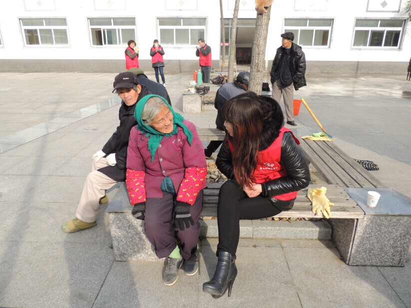 到了敬老院里,進(jìn)行大致的分工后,就開始熱火朝天的忙碌起來。有的幫助擦玻璃,有的忙著打掃墻體欄桿衛(wèi)生,有的清理院內(nèi)樓內(nèi)的場(chǎng)地過道和綠化帶雜物,還有的義工為行動(dòng)不便的老人打開水。雖然天氣干冷,但似乎毫不影響大家伙的干勁,經(jīng)過一個(gè)多小時(shí)的努力,將敬老院里外打掃的干干靜靜。之后在休息的時(shí)間,義工們?nèi)齼蓛傻馁r院里的老人聊天談心,回憶他們往年的崢嶸歲月,或是近期的樂呵事兒,在融洽祥和的氛圍中結(jié)束了此次的義工社之行。