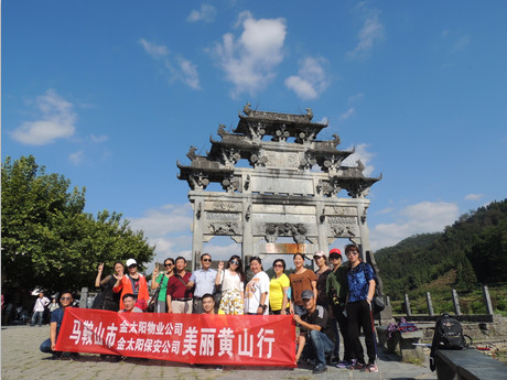 為激勵(lì)公司員工工作熱情,緩解工作壓力,增進(jìn)各職能部門(mén)的協(xié)作精神,金太陽(yáng)物業(yè)集團(tuán)于2017年9月16日至17日組織管理人員“黃山二日游”活動(dòng),本次活動(dòng)由朱曉軍經(jīng)理?yè)?dān)旅行隊(duì)隊(duì)長(zhǎng),十六名管理者熱情參與。 16日清晨,旅行隊(duì)整頓行裝從公司啟程,經(jīng)四個(gè)小時(shí)的車(chē)程到達(dá)了黃山黟縣,午間聚餐后,大家一掃旅途中坐車(chē)的疲憊,正式開(kāi)始游覽行程。